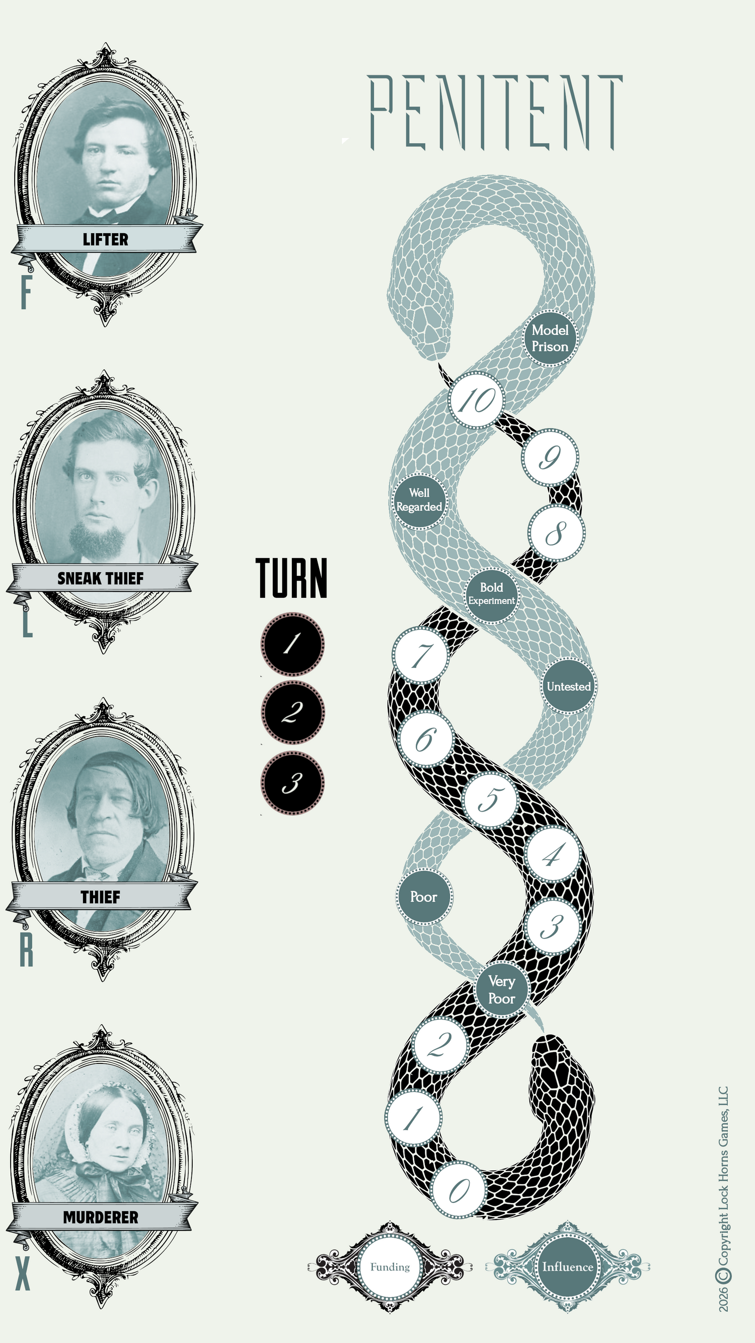Penitent is a solitaire game where players take the role of 19th century architects, creating a vision of the American penitentiary and penal reform.